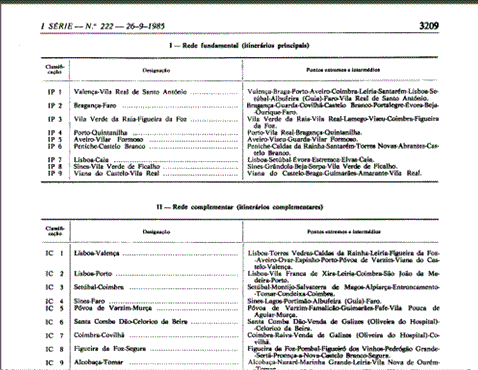 - Rede Fundamental, constituída por Itinerários Principais (IP);